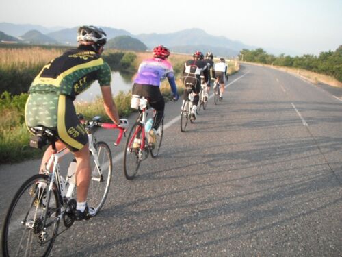 今朝も爽やかメンたちと朝練。 5時半に東山集合。 本日のメンバー。 しばけいさん、ガッツFくん、ラオウハタくん、ツム弟くん、トラのY川さんとタカスポ。 今日はツム弟くん先導でスタート。 河川敷でローテ開始。 速度は速いけど今日はなんだか落ち着いて…