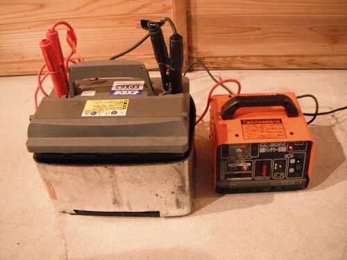 トゥインゴゴルディーニは 雨天時の通勤がメインです。 会社が近いので特に冬場はバッテリーが弱ります。 弱くなると始動後に アイドリングが少しバラつく(≧ω≦;) 電圧あたったら、やっぱし弱ってた。 んで、充電。 来月は車検だなあ。 今朝も3本ローラー…