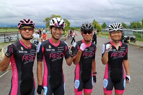 今日はとっとりクリテリウム。 やっぱ治らなかったので応援。 しばけいさんと一緒に(・ω・)ノ RISOから参戦するのはカリオ、ツム弟くん マナチェフさん、チャラオコーチ。 頑張ってね! 応援組も一緒に。 真ん中の2人はリーダーの病状を心配してくれてる(*ノ…