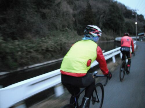 火曜RISO朝練。 今年の第1回目です(・ω・)ノ コースはバサラ往復。 メンバーはRISOのマナチェフさん、コンクイのどーげんさん、 若木塾のくらげ番長( `ー´)ノ どーげんさんは松江から自走・・・。 5時半はまだ暗い。 ローテ間隔は各自調整でね。 今朝も寒い…