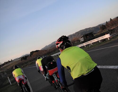 今日はRISO練。 今年初の周回練です(・ω・)ノヤッホイ 5時半スタート。 蜂蜜たっぷり食パン1枚とコーヒー。 ちょうど良かった。 メンバーは、ツムブラ、マナチェフさん、かっぱーさんと コンクイスタのタケさん。 花回廊小周回を5周。 千切り合いなしのペース…