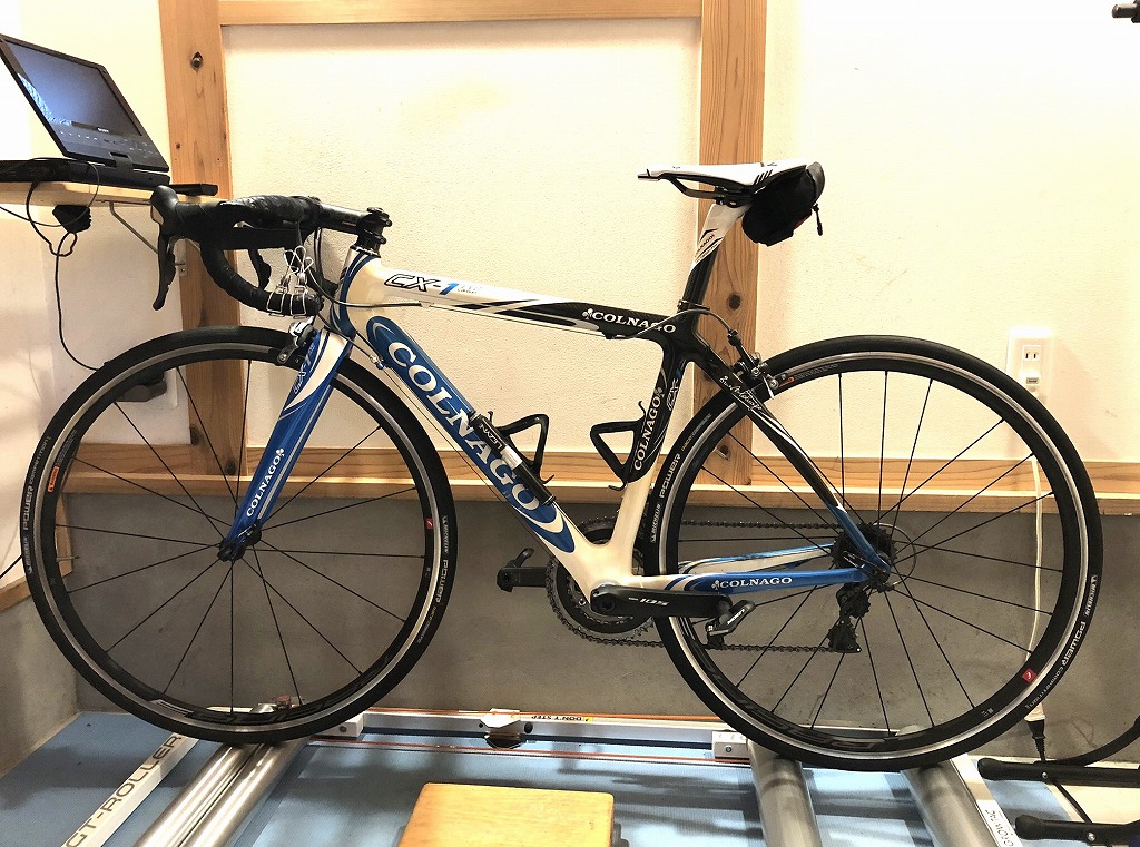ローラー用のコルナゴCX-1号はサドルが高すぎて踵が届かない( *´艸`)プププ